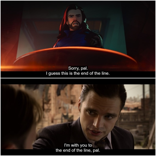 喪屍美國隊長襲擊雪倫,準備用盾牌再襲擊巴奇,但他的作戰套路早就被巴奇看透,一掌接住盾牌將隊長的身體砍半。並說了:「抱歉夥伴,我想這裡就是終點了。」這句話對應了《酷寒戰士》回憶片段裏他和史帝夫說的話。
