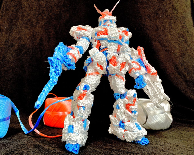 日媒體報導了@BitBlt_Korry藝術家使用了繩子編織而成的鋼彈,而且是使用會反光的塑膠繩索,能夠單獨站立,令人不禁佩服推主的巧手。