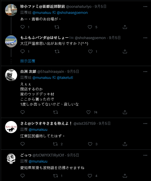 事實上,位於お台場另一旅遊名景「大江戶溫泉物語」也終於在2021年9月5日這天正式結業。但或許是因為不捨,不忍再看到再有伴隨自己青春的名店因不敵疫情受創關閉,在結業日當天的開店前30分鐘,大江戶溫泉物語門外是聚集了大批的人潮,為的就是來一趟最後的泡湯,作為自己與該店家的最後回憶。