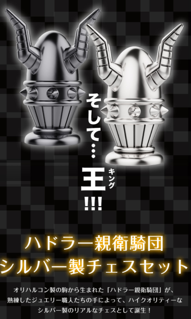 由國民 RPG 遊戲「勇者鬥惡龍」改編而來的動漫作品《勇者鬥惡龍 達伊的大冒險》,近期宣佈了將與銀飾品牌 U-TREASURE 合作,推出劇情中大魔王巴恩的西洋棋組,以純銀打造的高貴質感。將於 2021 年 11 月上旬接受預購,售價為到頂的 3,300,000 日圓,