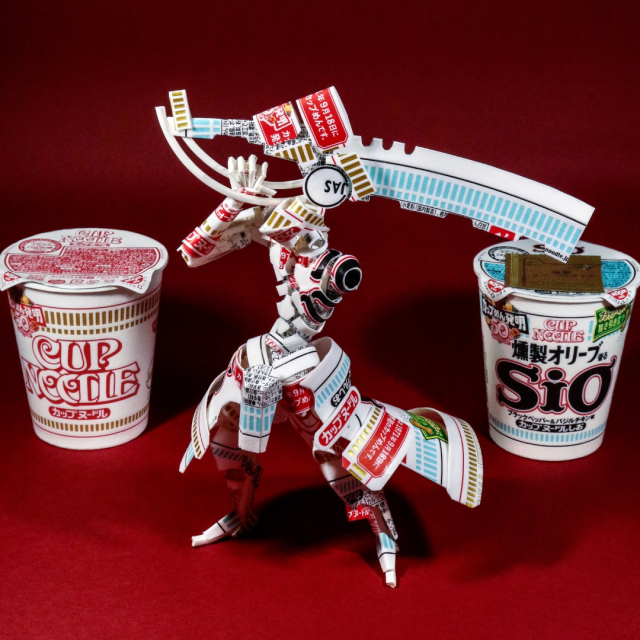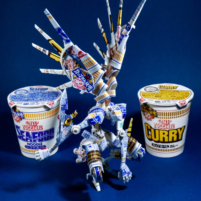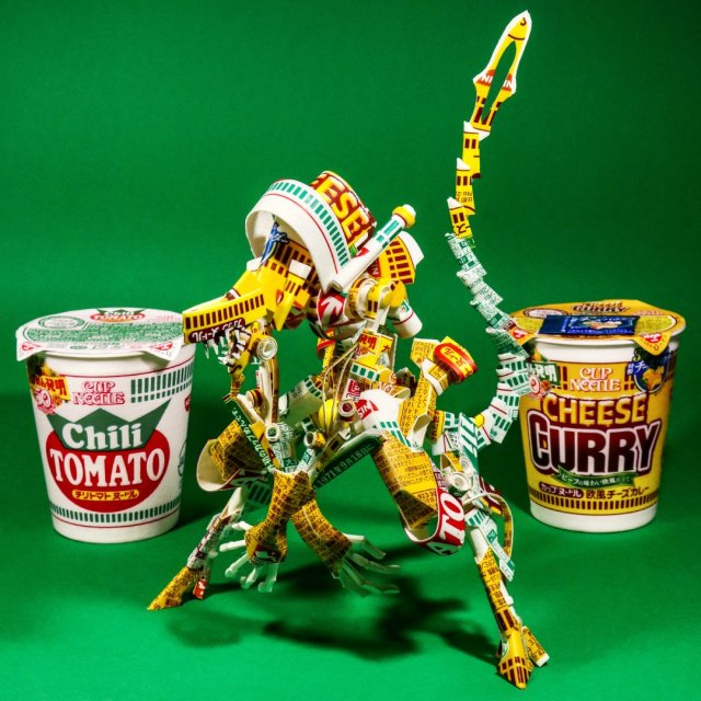 這些創作不僅讓人想起前一陣子我們所聊過的「空箱職人」,利用鬼斧神工的技術將回收飲料盒或餅乾盒做成的雕塑藝術外,同時也不禁佩服日清食品這麼十足具有巧思、超酷炫,相當有創意的產品宣傳,再加上先前的杯麵戰隊合體廣告,不得不說日清在這方面的的確確是個鬼才啊!
