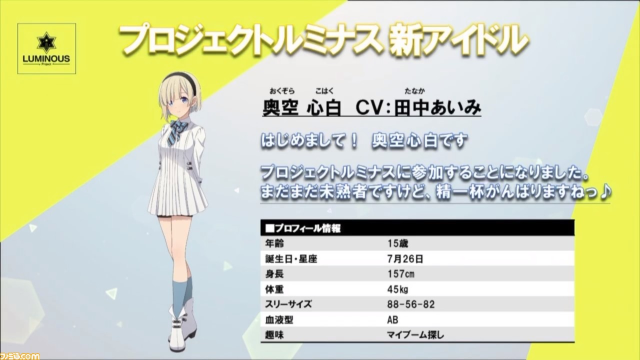 本次故事聚焦在 Project LUMINOUS的團隊組建,從製作人直接與事務所再到偶像邀約,劇情中在街訪遇到的少女「奥空心白」為楔子,從他的天賦異稟開始,最後將以29位偶像齊聚一堂為目標。