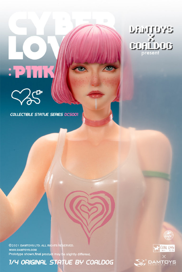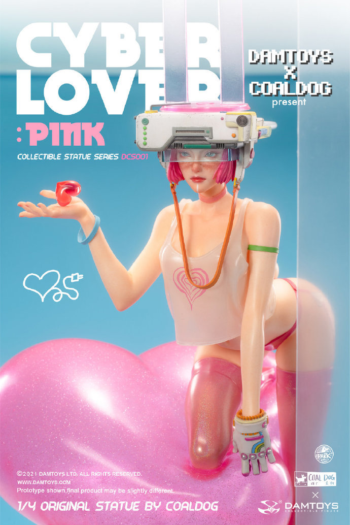 玩具廠牌 DAMTOYS 與煤廠黑狗(Coal Dog)工作室設計師 Park支,在攜手推出多款 12 吋、 6 吋可動人偶收藏後,這次又發表了全新的 1/4 比例原創雕像「CYBERLOVER-PINK 賽博戀人」魅力新作,限量僅 299 體,預計將於 2022 年第二季發貨。