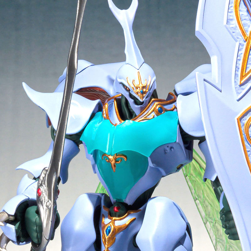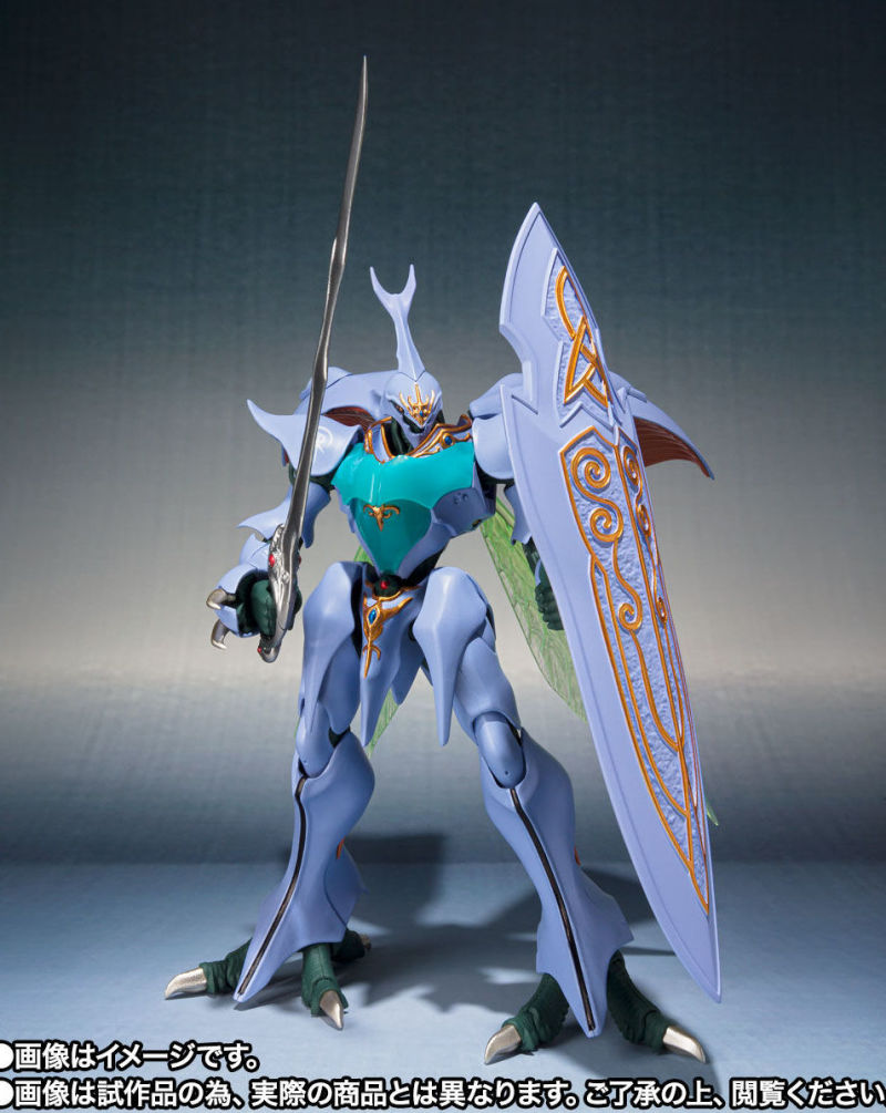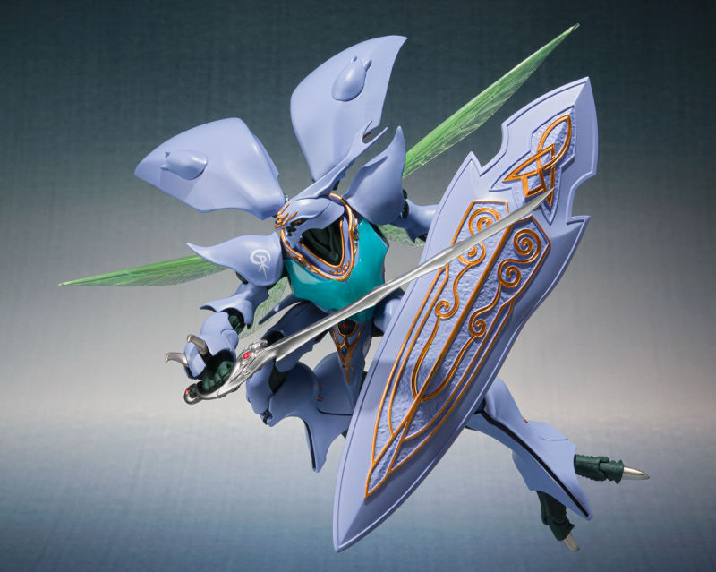 這款Robot魂的AURA FHANTASM版本薩拜因,同樣以AURA FHANTASM的原則,重新設計,在外型主顏色上更近似丹拜因,線條也更加流線。在可動性上也有著不錯的表現,單膝跪下展開駕駛艙等動作也OK,配件部分,薩拜因的標準靈光劍,以及外型設計相當精緻的大盾,另外還有可動手部零件可替換。