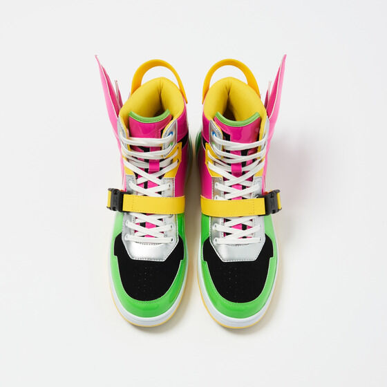 採用《假面騎士EX-AID》的獨有色系,搭配騎士造型上的頭髮變換為鞋子上類似翅膀的設計,並結合扣帶的與色系拼接的設計,展現出獨有品味的鞋款。售價為 27,500 日圓。