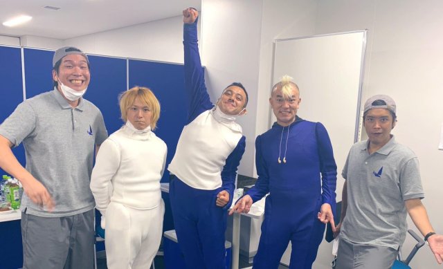 不過實際上,在當時東京奧運開幕會結束後不久,就已經對外公布了這幾位小藍人、小白人的真實身分了,分別為吉本興業的諧星組合「GABEZ」,以及身穿小藍人裝扮的HIRO-PON,還有藝人南大介、松本亮等五人所共同演出,並且也在Twitter上分享他們的幕後合照,慶祝順利演出。