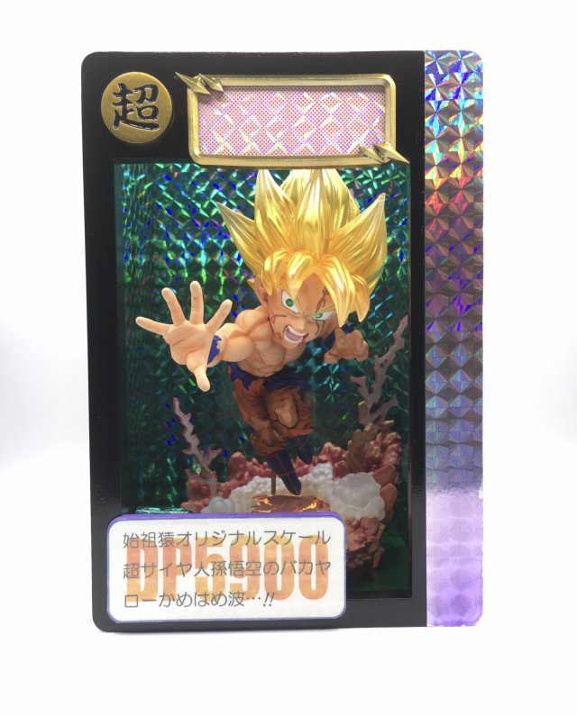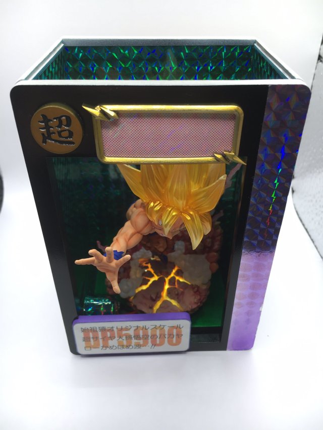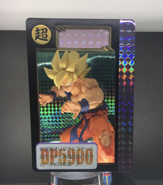 有趣的是,可以看到盒子的外觀正面及背面,是以萬變卡閃卡卡面來作為設計,側面的部分也很有趣地營造出一張張卡片堆疊的樣子,使得整體看起來就好像是卡片中的悟空立體畫一樣,是相當有趣的創作。
