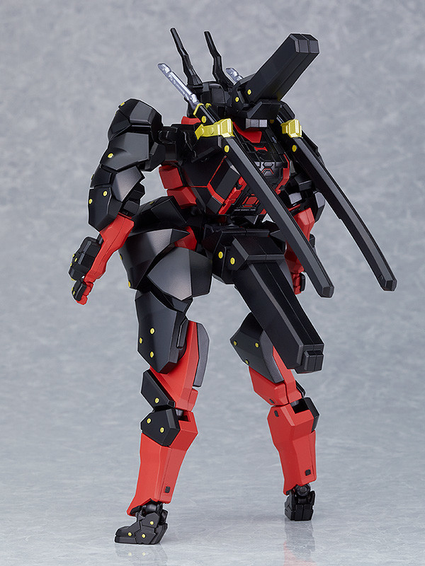 「MODEROID 黑骸」藉由多種成型色零件、上色完成零件與貼紙,大幅再現劇中形象,還原設定中可動軸設計相當獨特的關節構造,超振動刀為可收納於刀鞘的規格,搭配可動便能把玩出劇中帥氣姿態,駕駛艙區塊「The Cube」能夠自由拆裝,但無法像劇中那樣變形成載具。盒繪則邀請到機械設計師岡田有章特別繪製全新插畫!