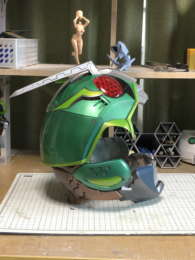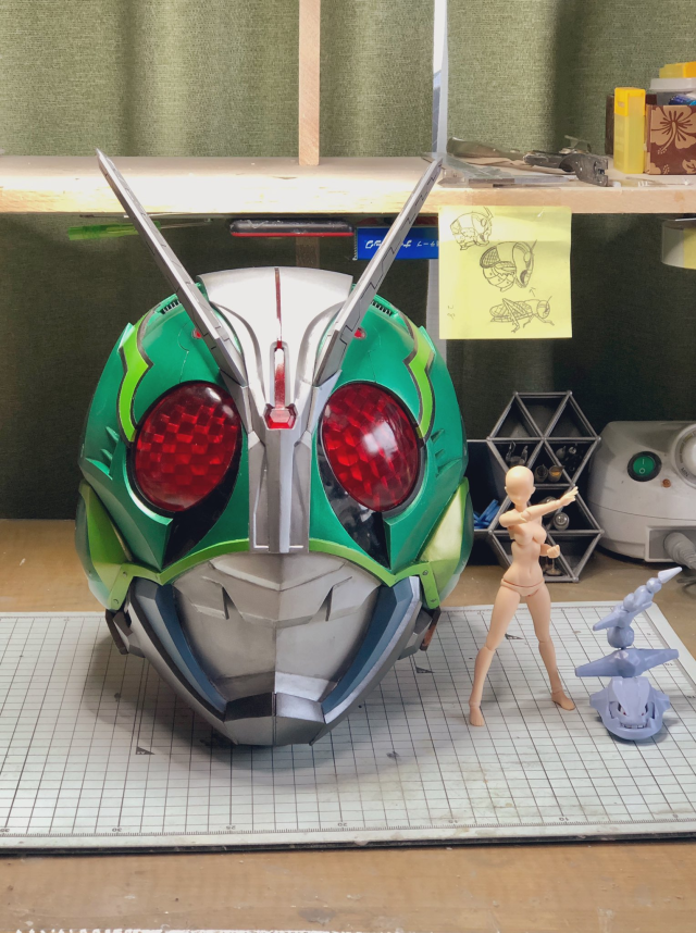 推主浅梨順一郎是在玩具原型分包商的公司工作,雖然常接觸這些商品,但並沒有實際製作的經驗。製作這個《假面騎士》3號頭盔安全帽完全是興趣使然,憑著自己對於《假面騎士》的熱愛想試著製作看看。