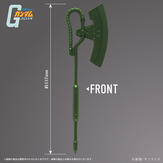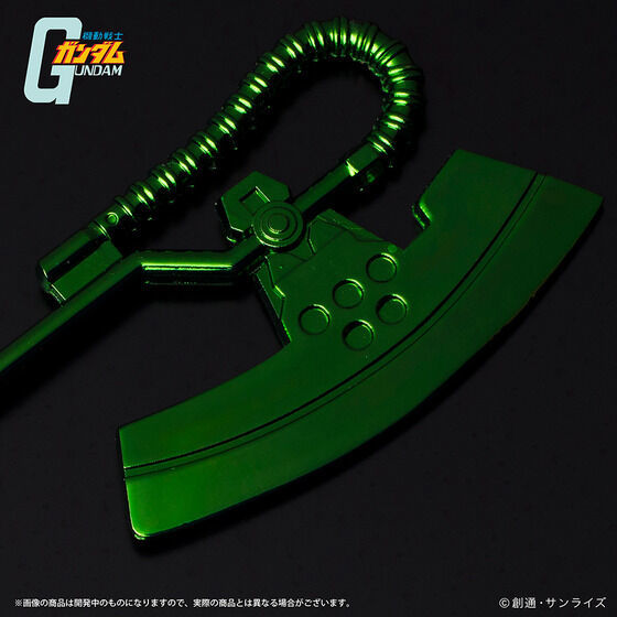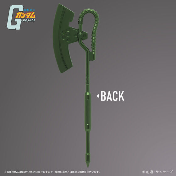 薩克招牌的電熱斧,為吉翁初期 MS 採用的近戰格鬥實體武器,利用 MS 本身提供的電能加熱刀刃,足以一擊劈穿艦艇的艦橋或砲塔。此次化作小巧精緻的拆信刀,讓玩具人拆信也能展現霸氣!!!