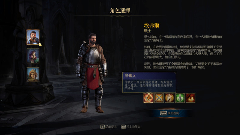 就如大家熟悉的RPG遊戲,《國王的恩賜 2:King's Bounty II 》也具備職業設定,從三個英雄角色:戰士、法師、聖騎士中選擇其一開始冒險。故事線起點於魔幻世界諾斯垂亞的荒廢凍土,每個角色都有屬於自己的背景,當踏出監牢後,隨著故事發展出「非線性」的冒險地圖。