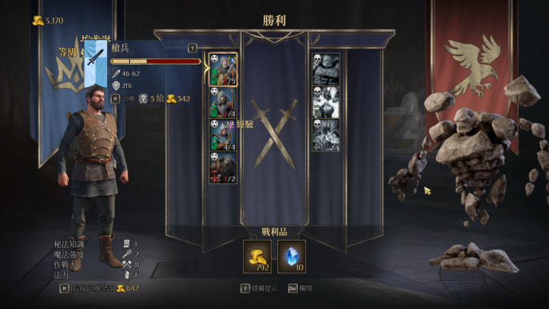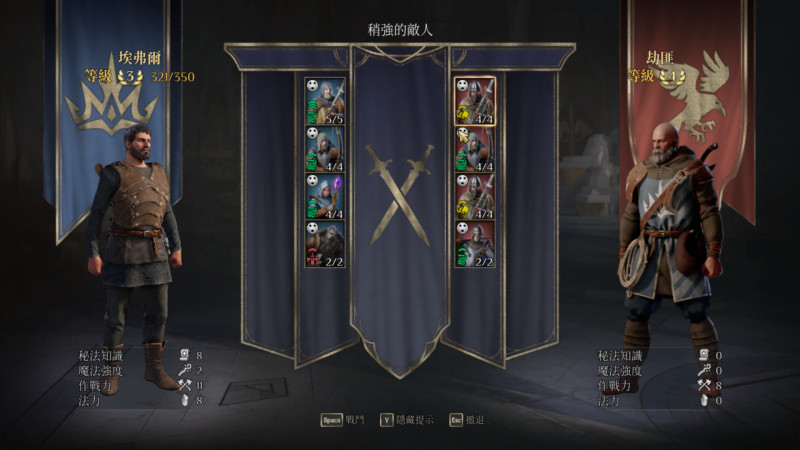 戰鬥是《國王的恩賜 2:King's Bounty II 》最迷人之處。進入戰鬥後,需要冷靜的分析戰場各種因素,包括地形、敵人屬性、軍隊狀態等等,接著進入「戰前佈署」。我們需要將弓箭手、治療師等遠程戰士安排後方,讓民兵、狼等兵種先發制人,當然也得考慮地形是否阻礙攻擊,又或者地形能提供防護。有時候需要集中火力先拿下敵人最強大的「狙擊手」,掌握距離做最大化輸出,才能拿下一場場的勝利並累積戰士們的經驗值。