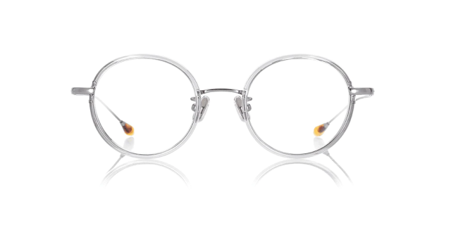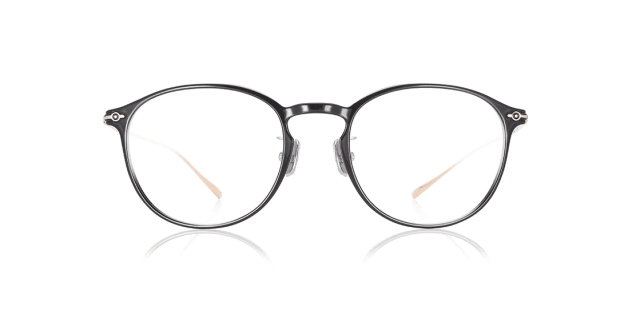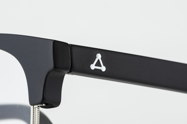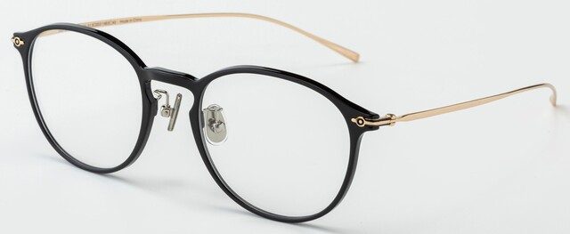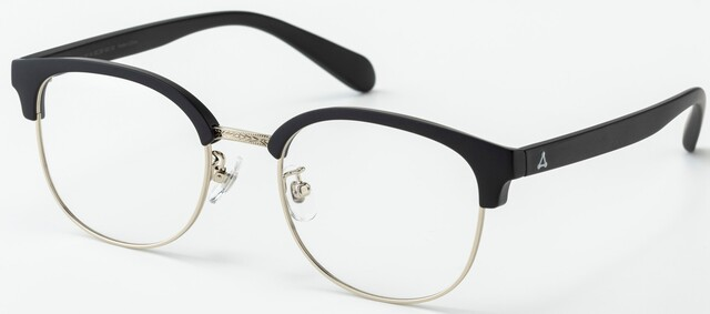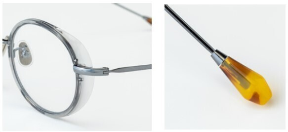 以黑色鏡框為基礎,眼鏡窗下方以金屬不同的樣式呈現,在眼鏡兩側有著式神「玉犬 白・黒」 的圖案。
