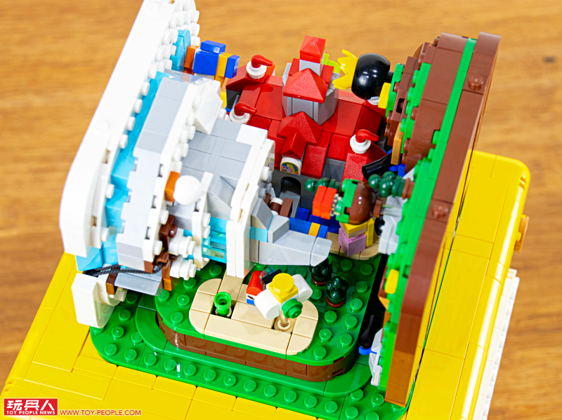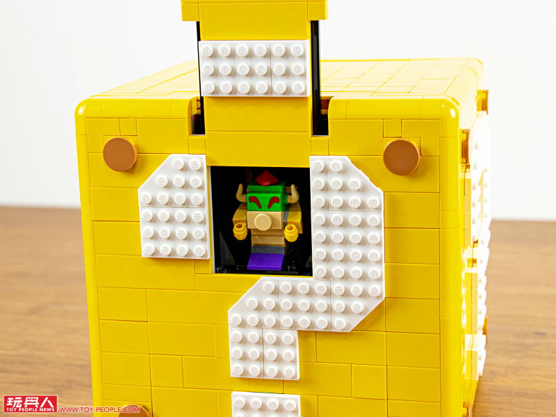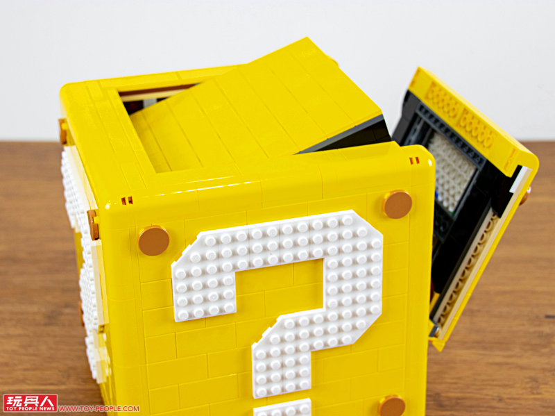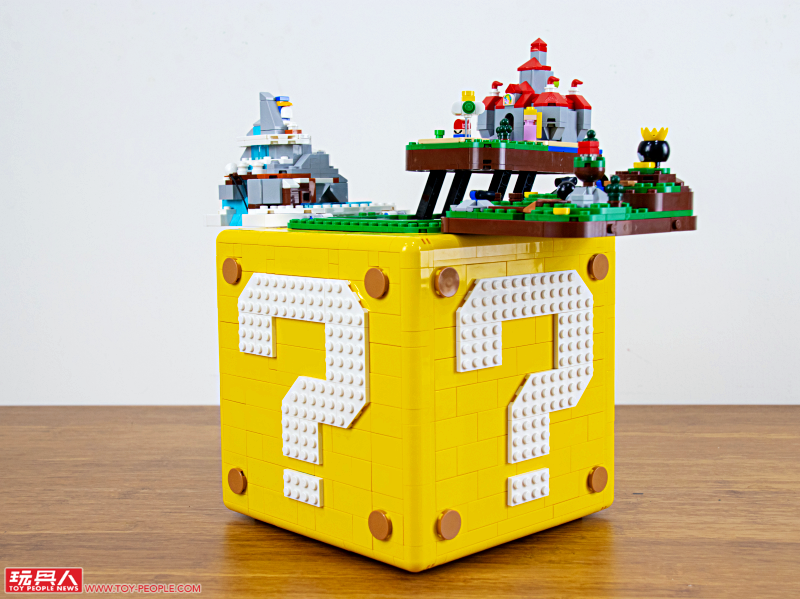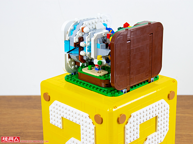 ▼ 就像超級瑪利歐系列遊戲中、去敲擊問號磚塊就會跑出物品一樣,這次的樂高也完美重現了這個要素,只要輕輕壓一下頂部的一角就可以立馬讓藏在內部的場景翻轉現身!