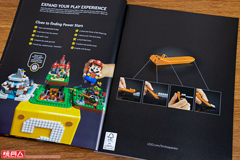 ▼ 這次的樂高也可以跟「樂高瑪利歐冒險主機」連動,收集隱藏在這裡的 10 個力量星星(Power Stars),真的就跟《超級瑪利歐64》電玩的內容一模一樣,這邊也記錄了該如何獲得星星的方法。