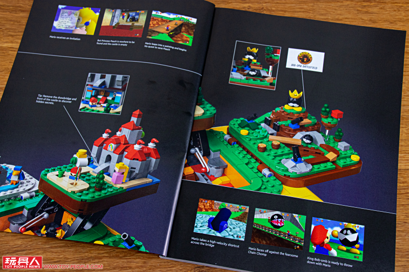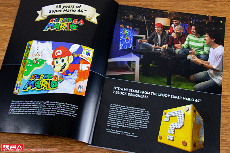 最後,有一件有趣的事情要告訴各位玩具人,雖說這次的樂高是以問號磚塊為主體、並從裡頭翻出《超級瑪利歐64》的關卡,但其實《超級瑪利歐64》中並沒有出現任何一個問號磚塊,這一點在說明書裡頭也有提及;不過貫穿《超級瑪利歐》電玩的問號磚塊總帶有一種「不曉得會冒出什麼」的驚喜感,相信這次的樂高不管是在場景還原還是翻轉設計,一定也會帶給玩具人們滿滿的驚豔。