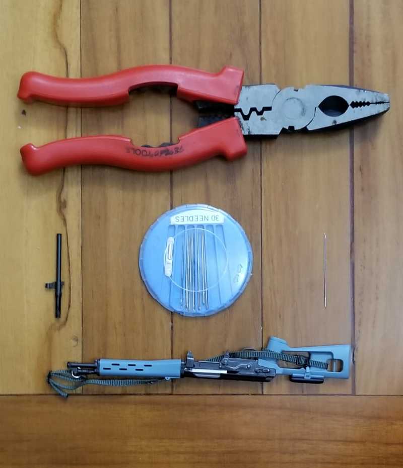 2. 用鉗牢牢將針扣著,再像螺絲批一樣對著斷口鑽孔