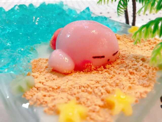 在上週任天堂所舉辦的線上直播發表會中,推主看到了將在明年也就是《星之卡比》30周年之際推出新作《星之卡比 探索發現》,推主對於這次新作的發表非常感動,立刻動手製作了卡比的甜點,分享他的喜悅。而卡比躺在沙灘這幕,也是本次發表會公布的新作預告影片卡比登場的模樣,十分還原。