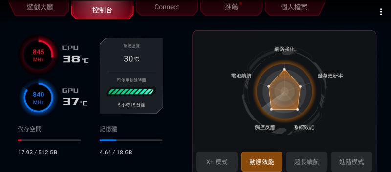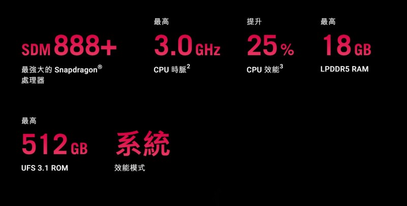 「ROG Phone 5s PRO」搭載全球最新高通® Snapdragon® 888+ 5G 處理器,全面提升效能表現,就算是執行高運算的 3D 遊戲時也能暢遊運行,也能透過內建控制台調整各種效能設定、調校工具,不論是哪一種玩家都能將「ROG Phone 5s PRO」強大效能發揮到極致。