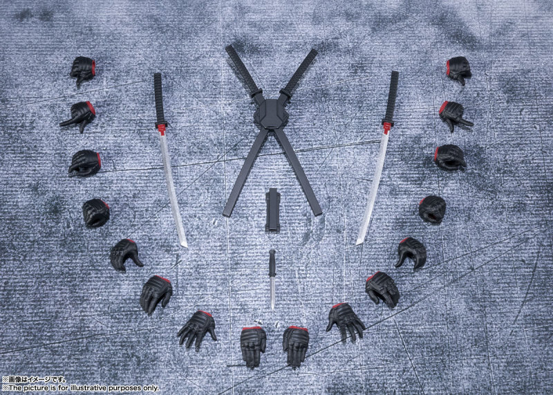 這次根據 2016 年電影《惡棍英雄:死侍》所打造的「S.H.Figuarts 死侍 可動人偶」高約 15.5 公分,充分再現了劇中那套紅黑配色戰衣,肩膀護甲、皮革腰帶、刀套、背帶,以及處處可見的髒污舊化都有逼真表現,最有趣的就是可以利用替換眼、超大量替換手重現死侍在電影中的各種嘴砲與胡鬧的場面!搭配隨人偶附上的日本刀、匕首,要擺出帥氣戰鬥姿態當然也完全沒問題,不過槍的部分則是一把都沒有,啊~一定是放在計程車司機阿杜(Dopinder)那邊對吧?!