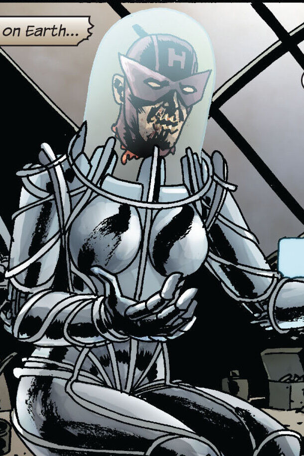 直到四十年後,鷹眼被砍下的頭被身為極少數倖存者之一的黑豹的孫子撿到,仍然活著並且已經失去了對血肉的渴望,才重新被裝進原本做給殭屍黃蜂女(Wasp)的機械身體來活動。
