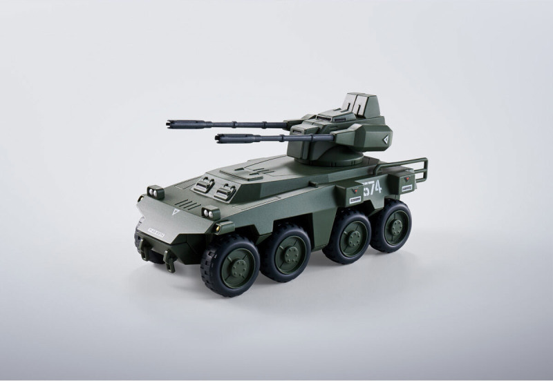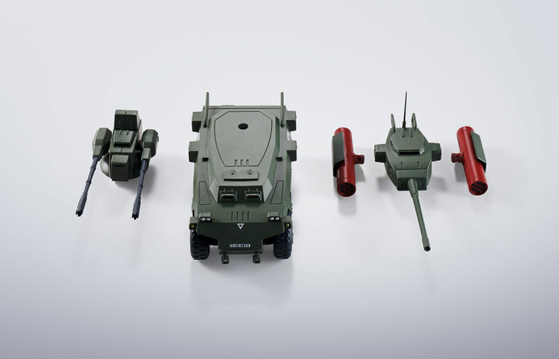這款由HI-METAL R所推出的40週年紀念版太陽之牙,是將達格拉姆和8輪裝甲車「ARMC-Instead」兩者成套販售的一款紀念版,積體的部分,將達格拉斯在外型的色彩與細部上色都做了加強,可動方面相當優異,可以將機體的大腿凹折,做出猶如坐在地面上的感覺。細部配件也很豐富,可替換手部零件、飛彈發射器等武器零件,另外8輪裝甲車上的砲座有三種可以替換。