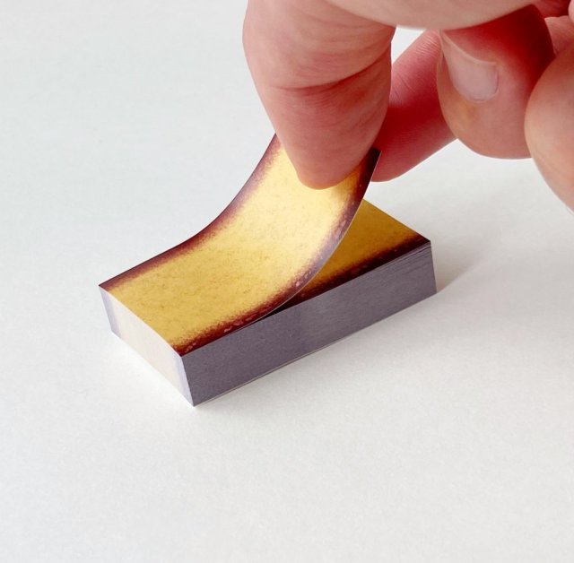 小巧可愛的「長崎蛋糕」便利貼,不僅外觀設計上因一張張堆疊而成的紙張,再加上逼真的蛋糕圖樣,使得遠遠看起來,就好像真的一小塊迷你蛋糕擺放在桌上一樣,當然如果你想要更有文青氣息,增添一點「可口」的感覺,你甚至可以將整本便利貼擺放在餐盤上,讓整體氛圍更加有fu~