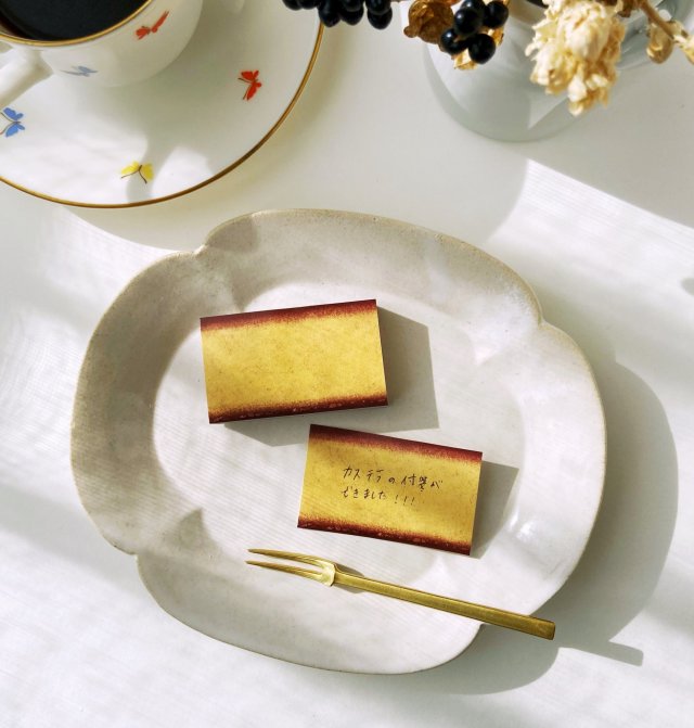 適合做為下午茶的可口餐點,不僅能夠滿足一日的休閒時光,更能夠成為近年來文創商品的創意新點子。一向以日式點心做為創意飾品與文具產品日本雜貨工坊desicco®︎(@desiccocco),除了推出各種令女孩子們喜愛的點心耳環、戒指等飾品外,其中以「長崎蛋糕」做為造型的便利貼,同樣也是深受文具控們的矚目。