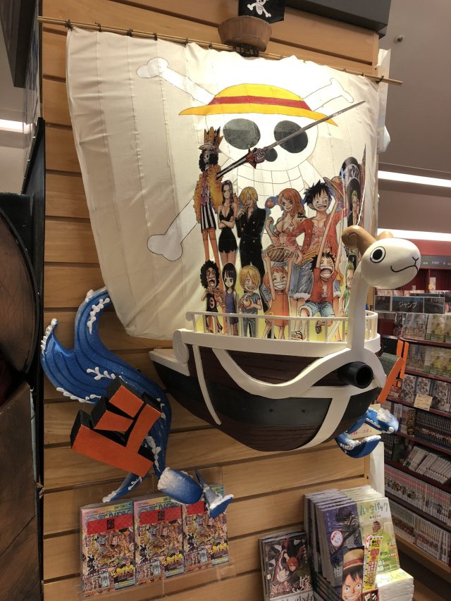 日本紀伊國屋書店店員banana(@banana72160268),在Twitter上分享了該店家內的「航海王」佈置藝術,據該名店員所說,這是由店內幾位員工同心協力,共同製作的布景,特別是牆柱上那引人矚目的梅利號,不僅是還原動畫中的樣貌,更也因此浮出了種種回憶。