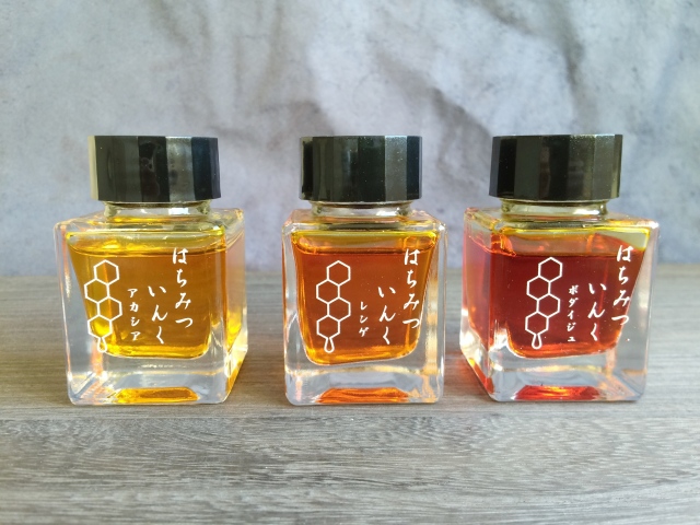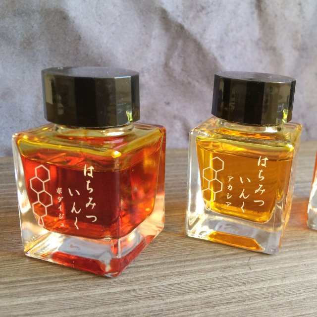 就連蜂蜜因深淺所呈現的不同色澤,也以特殊技術來還原,打造出三種不同的墨水商品「相思樹」、「蓮花」以及「南京椴」。同時,也因為本身清澈明亮的特色,裝在透明筆桿的鋼筆上,在陽光的照射下,更是突顯出與其他文具商品與眾不同的美。