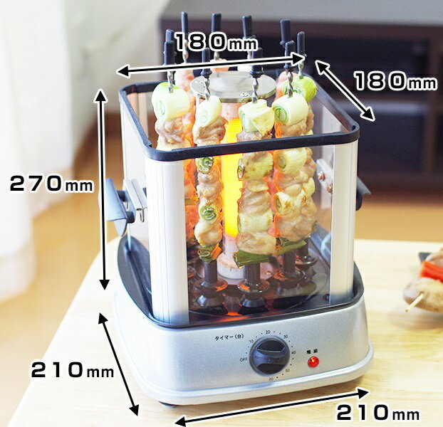 小小一台機器,你可以放上任何你想吃的烤肉串,最多能夠放入10支烤肉串,內部特別設計的卡榫,不僅能夠完全固定住串滿食物、蔬菜的串燒,並且還具有自動旋轉的裝置,你不需要一直特別守候在機器前不斷翻面烤到均勻,一樣都能享受到你認為最棒的熟度。