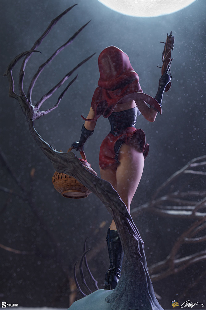 本作高約 48.3 公分,跳脫了前幾款雕像的迪士尼公主範疇,本次的主角是來自歐洲著名童話、由 J. Scott Campbell 重新詮釋的超辣「小紅帽」,不同於我們熟悉的那位柔弱小女孩,這次的小紅帽手持十字弓與提籃,身處於積雪的樹林裡追蹤「狼」的足跡;不只是那頂兜帽,小紅帽連頭髮都展現出豔麗的紅色,貼身馬甲、細腰,以及短裙的搭配散發出誘人的性感魅力!臉頰的腮紅、十字弓上的舊化處理、紅帽與短裙的飛舞動感形塑都有細緻表現。