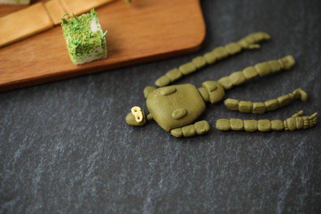 在影片中,我們可以看到製作過程是依照草圖,並用調配過的糖來擠出「巨神兵」的每一塊狀部位,然後一點一點地去雕刻成立體狀,最後再利用方糖來搭建成背景,並加以點綴,還原電影《天空之城》劇中所呈現在巨神兵周圍的鮮苔模樣。