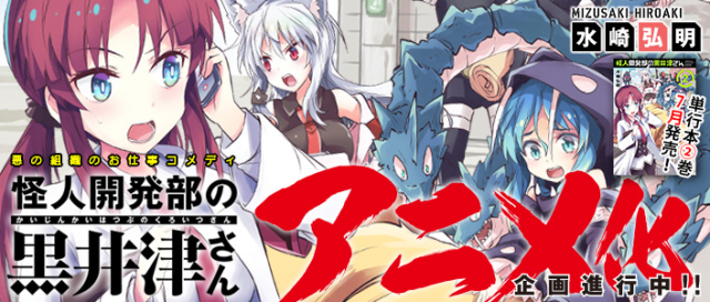 《怪人開發部的黑井津》漫畫從 2019 年 4 月在漫畫網站「COMIC Meteor」上先刊載單篇作品,隔年 10 月正式連載,至今發行兩冊單行本。