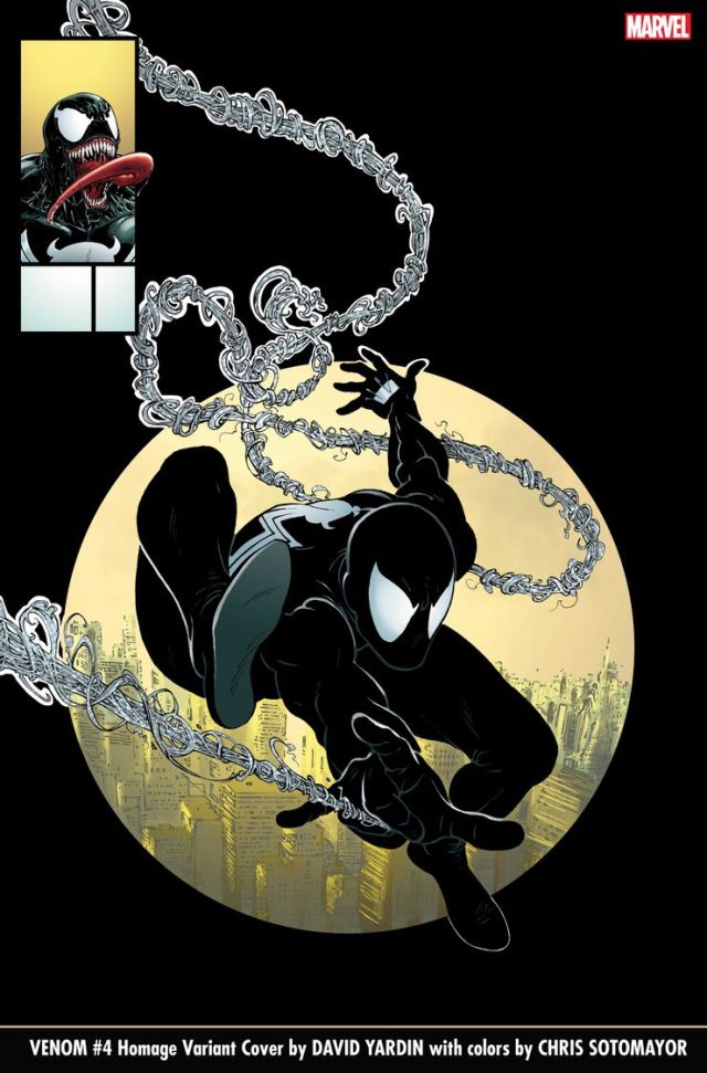 由繪師David Yardin與上色師Chris Sotomayor雙雙合作,向1988年由著名美漫創作者陶德麥法蘭《Amazing Spider-Man》#300致敬,為將在2022年1月5日發行的《Venom》#4繪製了全新變體封面,為該期封面增添不少珍藏性,是喜愛美漫的漫迷們必須擁有的收藏。