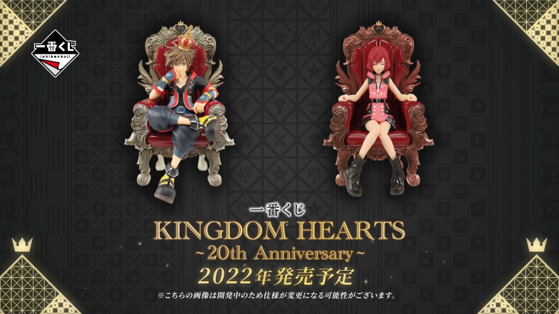 「一番賞 王國之心~20th Anniversary~」將眾多遊戲元素結合至各個獎項中,大獎 A、B 賞推出坐在王位上的男女主角「索拉」、「凱莉」雕像,還有時鐘、小布偶、畫板、手帕、玻璃杯、鑰刀吊飾...等實用的生活週邊、裝飾可以收藏!