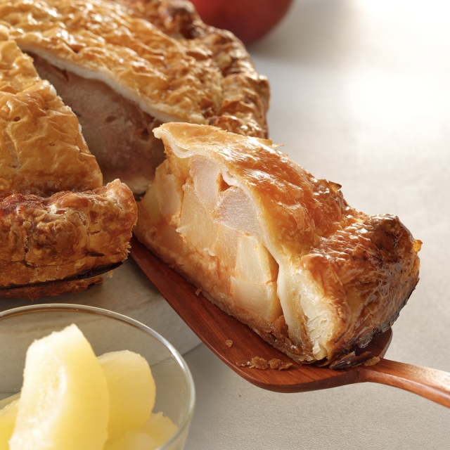「美國蘋果派」則是季節推薦商品,採用青森的蘋果製成,加入肉桂、肉荳蔻與各種香料等混合,放入酥脆的餡餅皮中烘烤。溫熱的口感搭配每一口都吃得到的蘋果,絕對是秋冬最佳選擇。