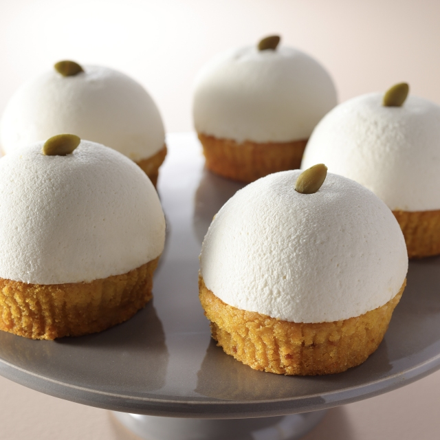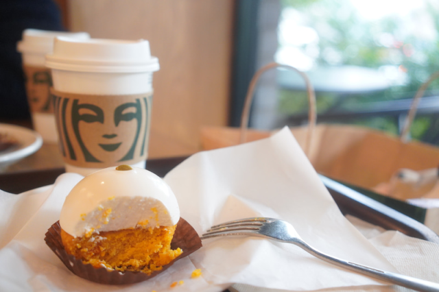 「豆漿南瓜蛋糕」也是季節限定的餐點 ,在麵團中加入南瓜醬烘烤,以蜂蜜和肉桂作為調味成分。上面放上了豆漿製成的慕斯味道溫和、質地光滑,搭配著蛋糕本體甜而不膩。