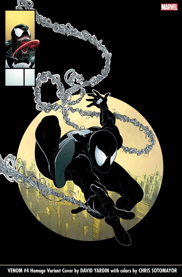 而除了《Venom》#4外,同樣在2022年1月5日發行的「經典封面致敬」企劃變體封面的作品包含了《AMAZING SPIDER-MAN》#85、《X LIVES OF WOLVERINE》#1;2022年1月12日的則有《AMAZING SPIDER-MAN》#86、《THOR》#21。