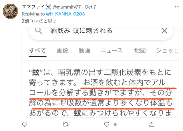 ▼ 有人則建議喝酒可以避免蚊蟲來叮咬