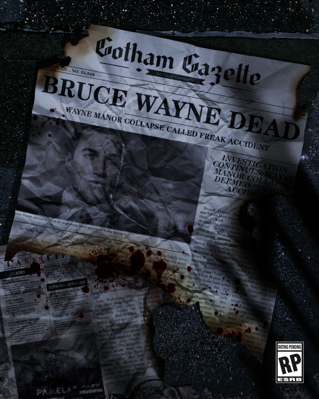 而在迎接第二屆DC Famdome之前,電玩《高譚騎士》在日前10月7日時於官方Twitter及Facebook上發布了一張「高譚公報」的圖文,內容寫著在先前電玩預告中所提及的「布魯斯韋恩之死」一樣,述說著他隨著韋恩莊園的爆炸一同逝世。