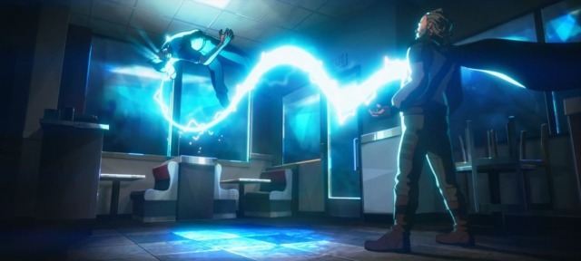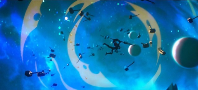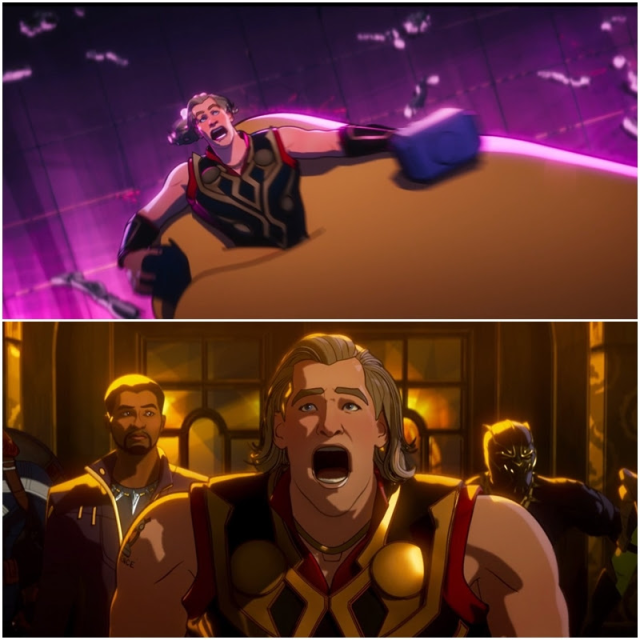 奧創大軍已經進攻派對索爾的宇宙,使得派對索爾留在拉斯維加斯奮力作戰。此時他被觀察者一把抓起,索爾這時放聲長叫,下一秒直接置身於至尊奇異博士安排好的基地。這個瞬間移動的橋段當然就是翻玩《雷神索爾:諸神黃昏》中他被帶回薩卡星時一樣。
