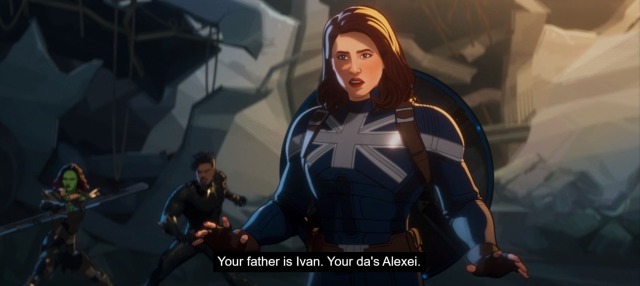 佩姬卡特為了讓娜塔莎相信自己認識她,於是說了她的生父是伊凡、養父是阿列謝。我們在《復仇者聯盟:終局之戰》經過紅骷髏介紹過她生父的姓,而阿列謝就是《黑寡婦》中登場的任務家庭父親「紅色守衛者」。這些私事她在主宇宙從來不曾對任何人提及,連她最信任的克林特都不知道,可見卡特隊長是她宇宙中娜塔莎完全信任的對象。