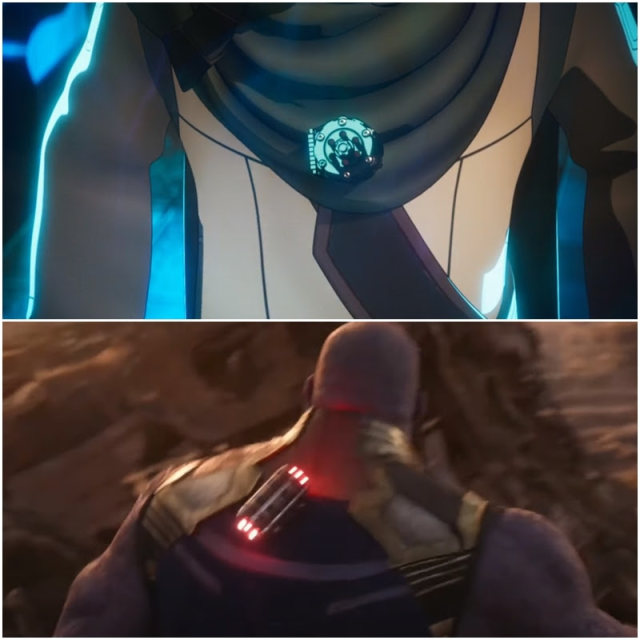 之前提過齊爾蒙格的演員麥可B喬登是日漫迷,就連齊爾蒙格的制服都是致敬《七龍珠》的貝吉塔。而當他將無限寶石鑲在胸前後爆發了力量,也像極了《七龍珠》裡的超級賽亞人。