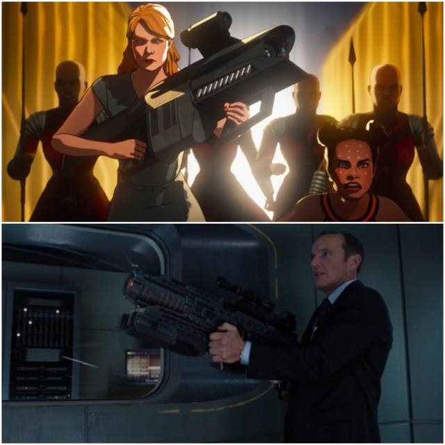 來到齊爾蒙格成為黑豹的宇宙,小辣椒、舒莉和朵拉部隊已經準備攻堅阻止齊爾蒙格,此時可以看到小辣椒手上的武器,和《復仇者聯盟》中考森原本要用來威脅洛基的武器款式相似。