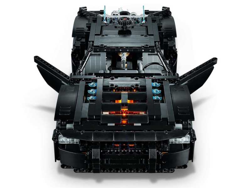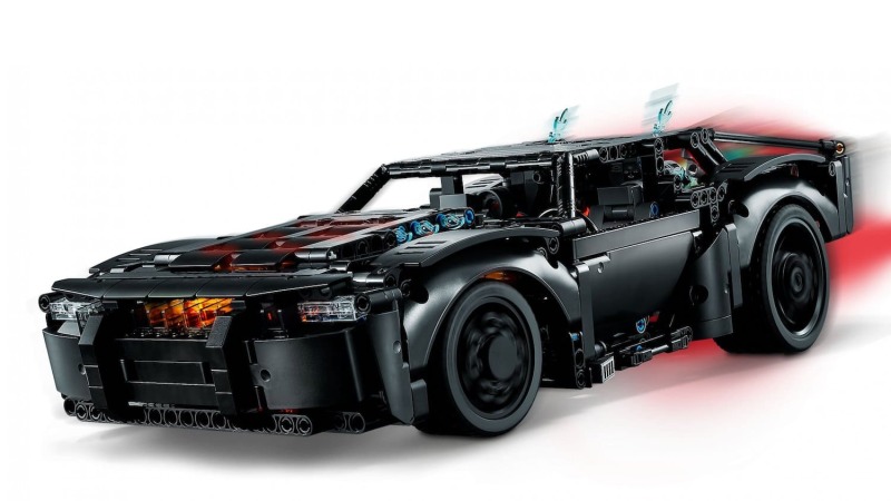 這台採用 300 多片零件打造而成的蝙蝠車擁有超美的車屁股,車頭部分搭載了子彈彈射機構,超讚的是蝙蝠俠還附有布魯斯·韋恩的頭部零件、頭髮。