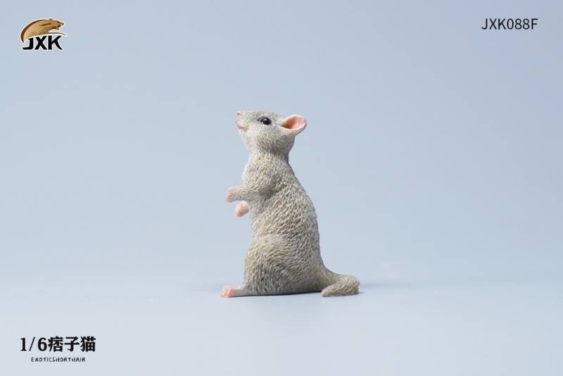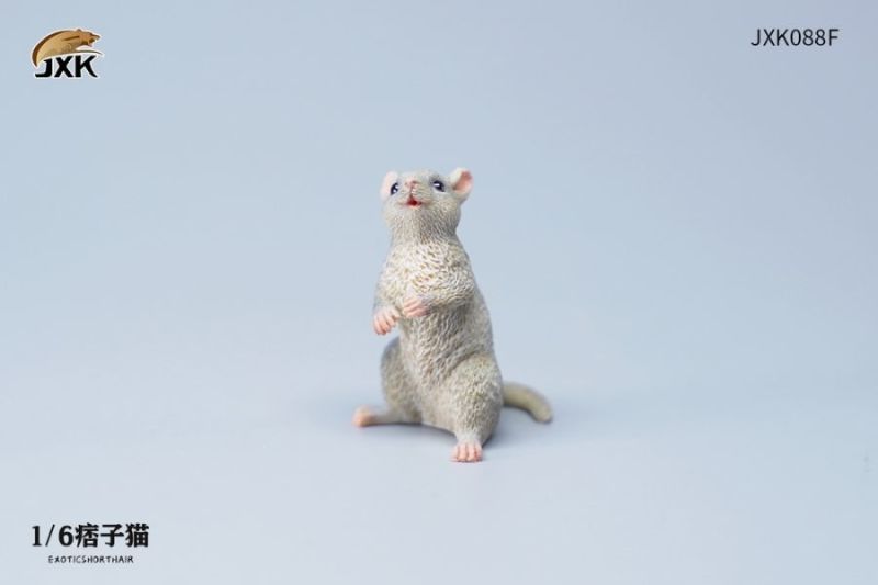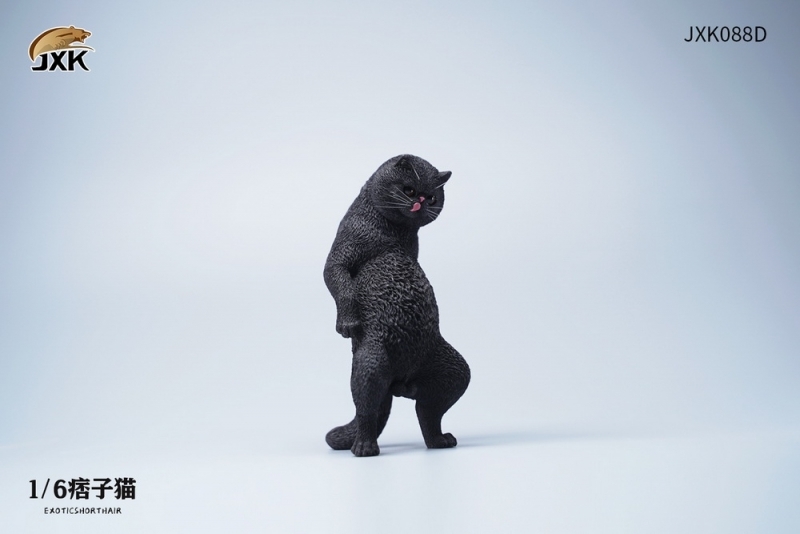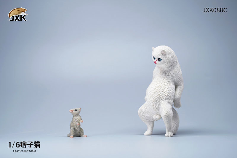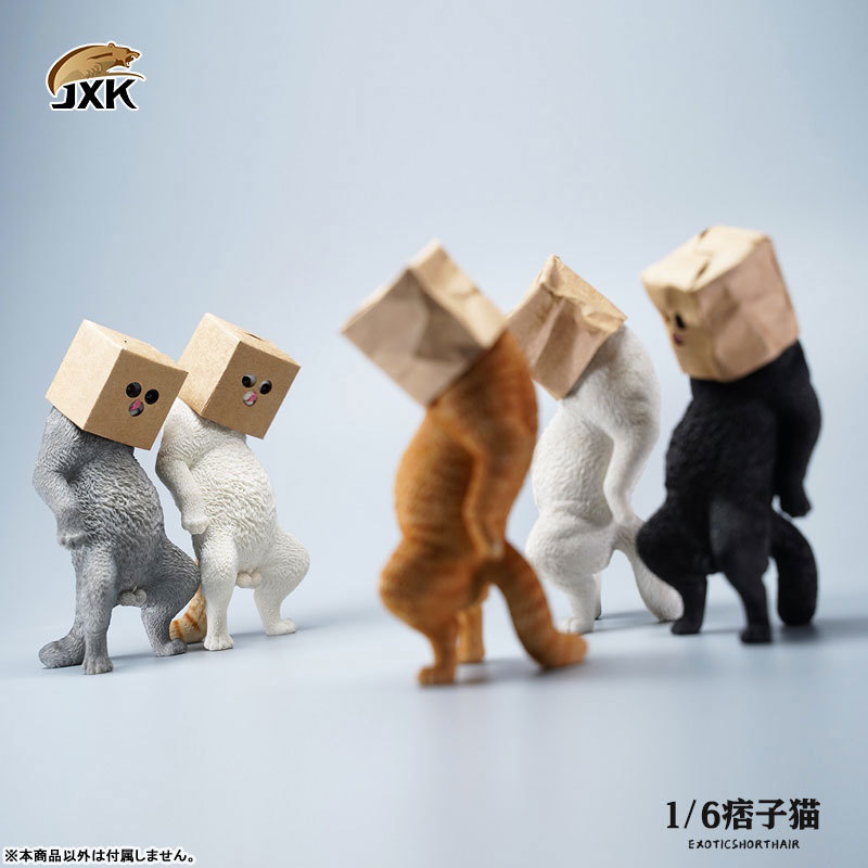 JXK Studio「痞子貓」系列塗裝完成品,以擬人化雙腳站立、露出毛蛋蛋的痞子的搞笑動作為造型,每款尺寸約高 12 公分,收錄有各種花色:痞子貓 A(橘尾白貓)、痞子貓B(橘貓)、痞子貓C(白貓)、痞子貓D(黑貓)、痞子貓E(灰貓),以及同系列的小老鼠。細緻刻畫貓毛,連眉毛、鬍鬚等細節都真實製作;圓滾滾的肚腩和精緻的小蛋蛋搭配吐舌表情,有種意義不明莫名的喜感~