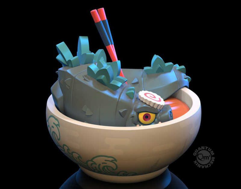 「Qrew Art Vinyl」是 QMx 旗下藝術家以獨特的個人風格詮釋各種流行文化,進一步將其結合玩具的收藏系列;本次的「湯之龍」高約 17 公分,打造出一隻蟄伏在拉麵碗中的怪獸,頭部上方還放著一片魚板非常可愛~外形致敬哥吉拉的怪獸、湯碗上的紅色太陽與富士山,散發出強烈的日系風格,怪獸不懷好意的眼神,有種一拿起筷子就會被牠狠咬一口的氣息,另外,自然垂落在碗外頭的尾巴也是相當吸引人的萌點啊!