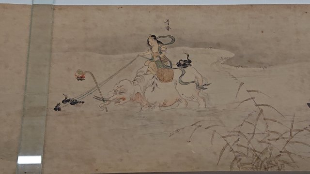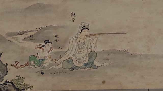 事實上,這是來自日本福岡美術館近期所舉辦的「遊びと笑いの日本美術」的展覽,而此張「觀音舉槍圖」,則是出自於知名畫家狩野昌運所著作的《異代同戯図巻》圖畫之一,而除了這張外,推主也分享了「放風箏的韋駄天」,以及「溜著鵜飼的普賢菩薩」兩張畫像,同樣也是極為惡搞又有趣的創作。