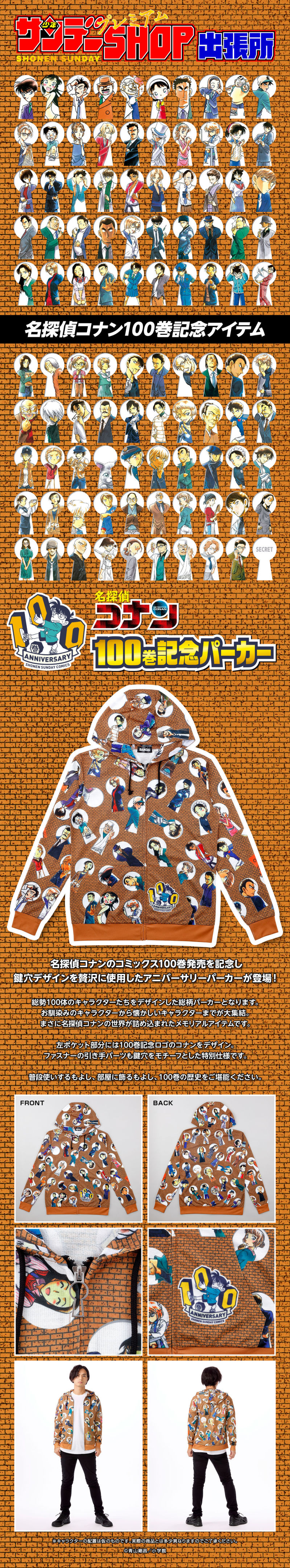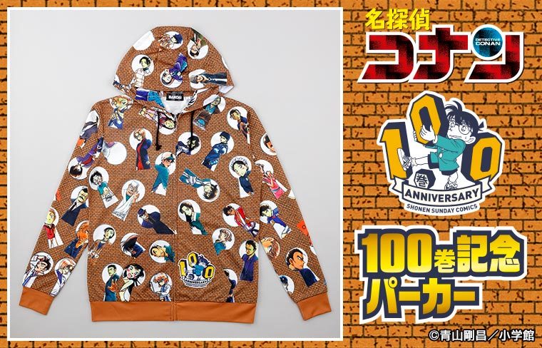 為紀念不遍殺全日本不罷休的東京死神《名偵探柯南》單行本漫畫 100 集,日本萬代旗下專門推出角色主題服飾、生活週邊的 BANDAI FASHION COLLECTION(バンコレ!)與《週刊少年Sunday》攜手,特別推出「名偵探柯南 100集紀念連帽外套」,參考售價為 9,350 日元,為受注預購販售,預計將於 2022 年 02 月發貨!